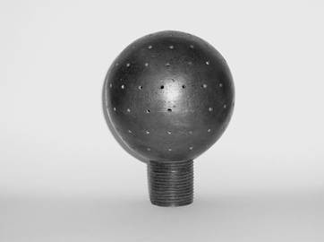 В 1864 году, в Англии, Стюарт Харрисон представил свою конструкцию автоматического оросителя. (Рис.1.4) Он представлял собой пустую перфорированную конструкцию из меди круглой формы диаметром 2 или 3 дюйма. Сквозь медную конструкцию проходил шток, который удерживал на месте резиновую прокладку, закрывавшую отверстие в питающем трубопроводе. Сам шток удерживался на месте с помощью веревки. Когда огонь сжигал веревку, шток падал, открывая отверстие в питающем трубопроводе. Вода под давлением подавалась в круглую камеру оросителя и разбрызгивалась над очагом возгорания. Изобретенный Харрисоном спринклер был наиболее чувствительным для того времени, однако он не привлек должного внимания, возможно из-за начавшейся в США гражданской войны.